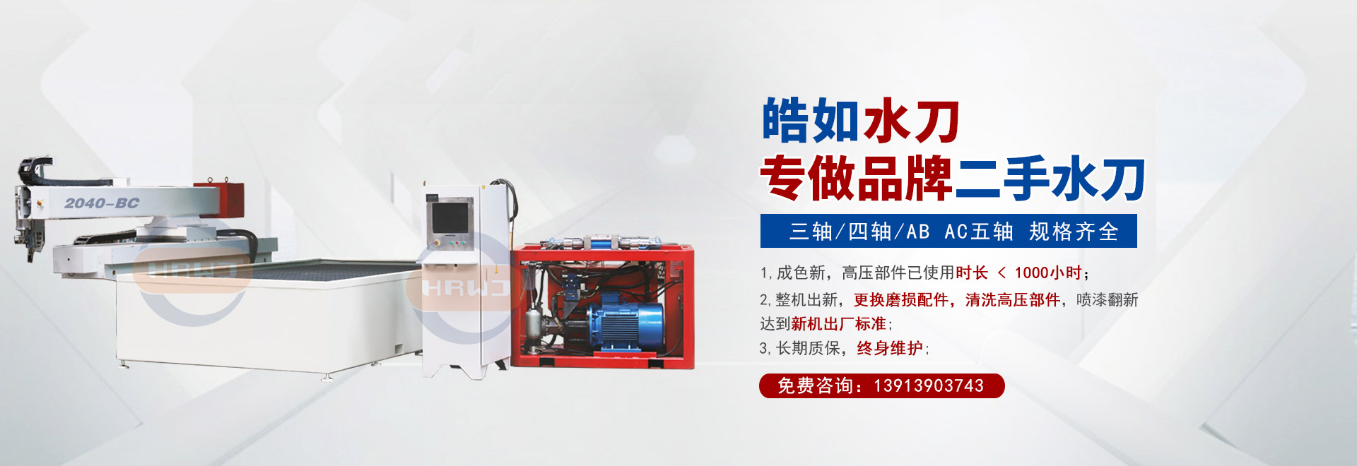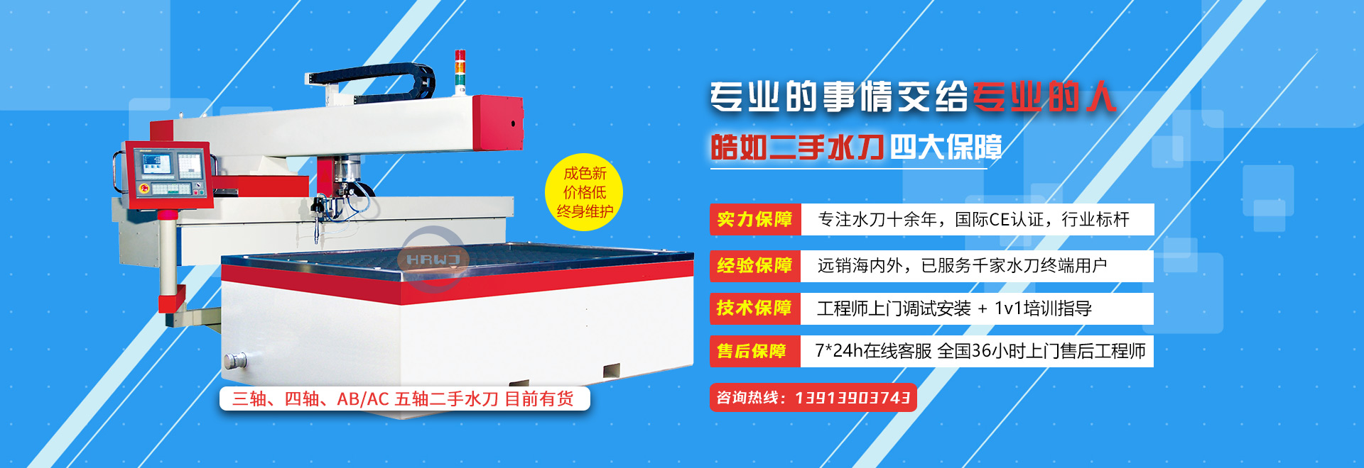 ① 直接從水刀終端用戶那里回購知名品牌水刀,經(jīng)32道工序質(zhì)檢,保證來源,保障品質(zhì);